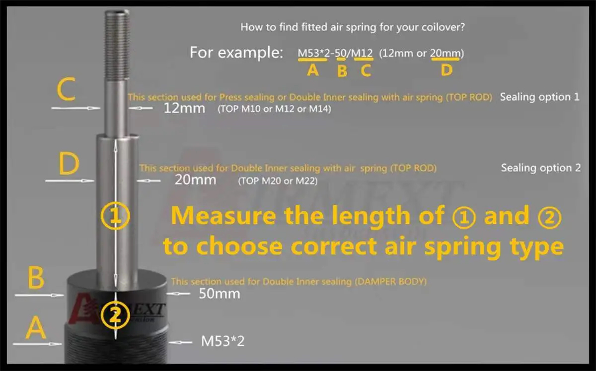 【測定例】A: M50 P1.5 B: 48mm C: 12mm D: 20mm ①100mm ②30mm